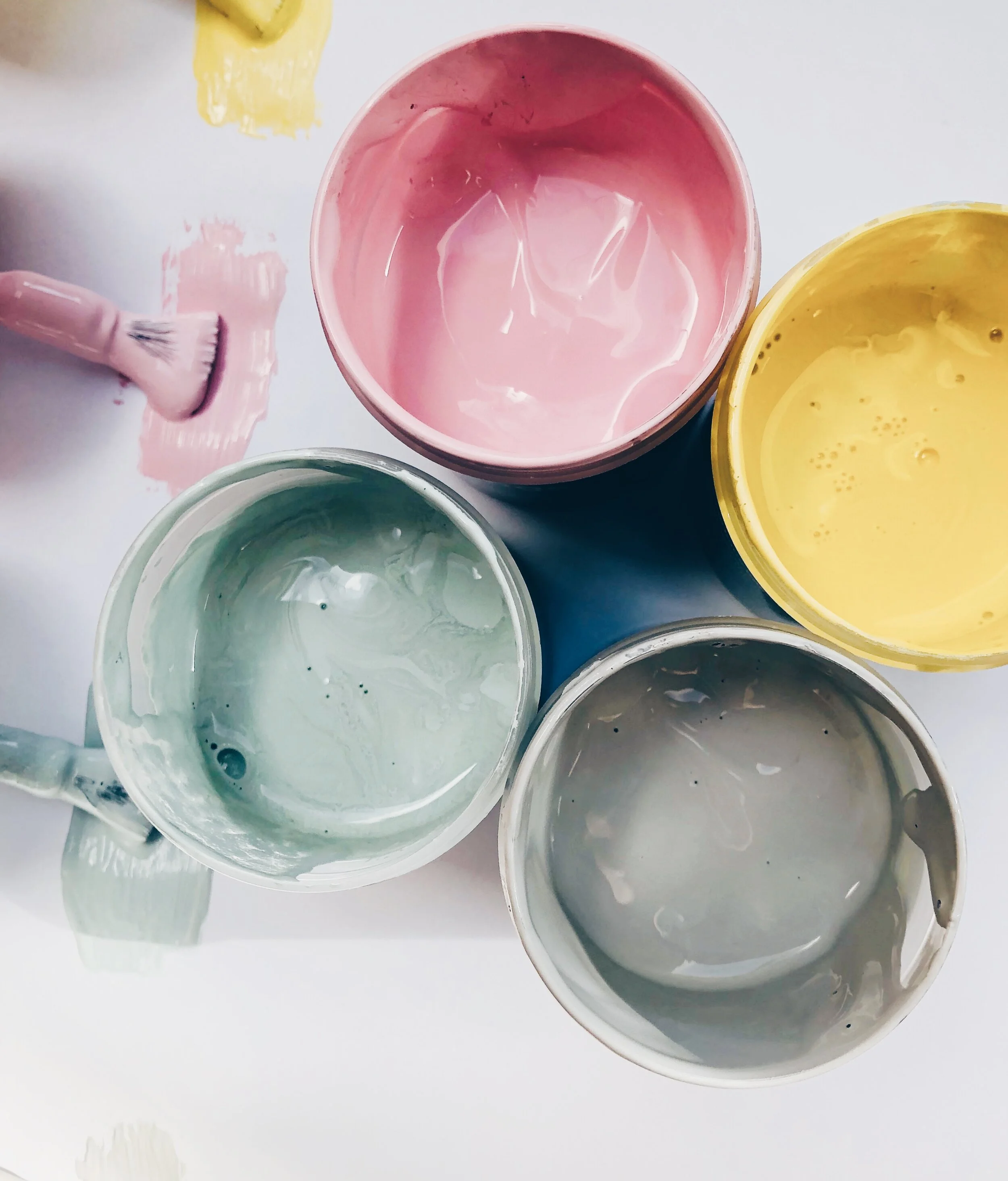 4 pots of tester paint – (I got mine from B&Q and they were only £1.50 each) I had 4 tester colours and used regular black acrylic for the more bold patterns.